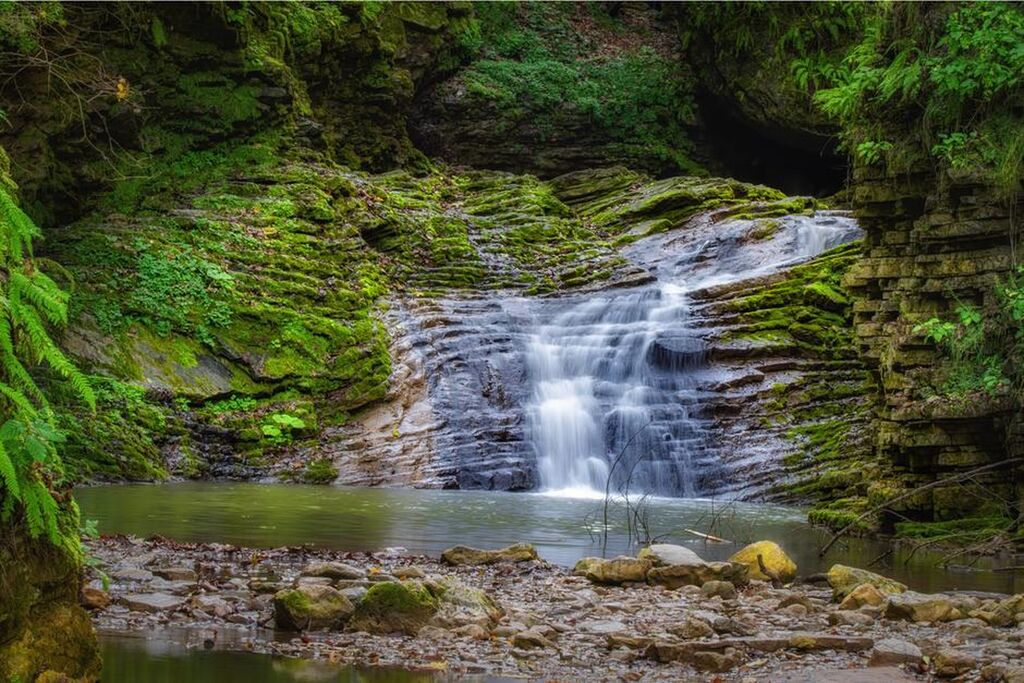 Сказочный мир с тенистой зеленью, «слоёными» каменными уступами, хрустальными ручьями и звенящей тишиной — это водопады Руфабго. Притаился райский уголок за посёлком Каменномостским, в Адыгее. Здесь ручей Большой Руфабго спускается с Азишского хребта, проходя сквозь горно-лесную чащу. Поток воды образует полтора десятка самых разных водопадов, а затем камнем падает в объятья реки Белой.