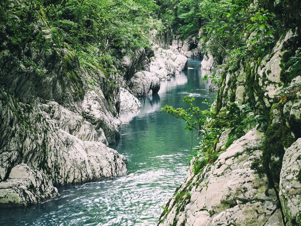 Пробивая себе дорогу в скалах, горные реки создают невероятной красоты каньоны, как будто сошедшие со страниц фантастических рассказов. В одном из таких ущелий течёт Хоста — одна из самых известных рек окрестностей Сочи. Скалы здесь немного расступились, и узкая лента реки спряталась на глубине нескольких десятков метров. Вершины скал, исчерченных тонкой паутиной мхов, укутаны тенистым ковром реликтового самшита.